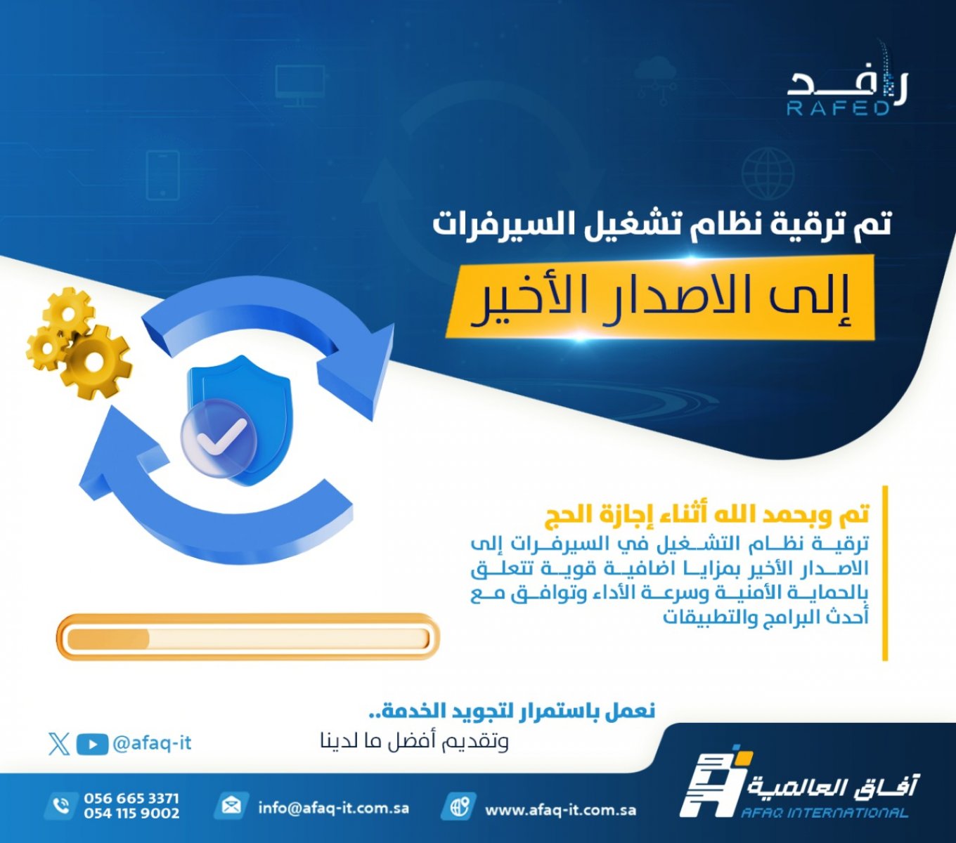 فى الأونة الأخيرة اعتمد كثير من الجمعيات نظام رافد الذى يعد نقطة تحول فى الميدان الخيرى حيث هو لبنة مهمة جدا فى تاريخ التحول التقنى إذ يعتمد على فريق دعم محترم يقدم أفضل الحلول ومخططات سير العمليات وتوزيع المهام واعتمادها وهى التى من خلالها استطعنا تحقيق نجاحات متميزة فى الموارد المالية وفى إدارة الخدمة المجتمعية وفى ضبط إدارة الموارد البشرية وتنظيمها.